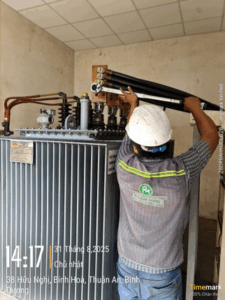 Công trình đã thực hiệnBảo trì hệ thống điện cho Công ty TNHH Scientex & Tsukasa Đã đăng trên 20/10/2025 bởi tiennc 20 Th10 – Hệ thống thử nghiệm 22kV-0.4kV – Bảo trì tủ RMU – Sửa chữa máy biến áp 2000 KVA tiennc Lắp đặt máy biến áp 700 KVA cho Công ty TNHH Scientex & Tsukasa Thiết lập hệ thống tiện ích CHO MÁY CẮT TỐC ĐỘ CAO